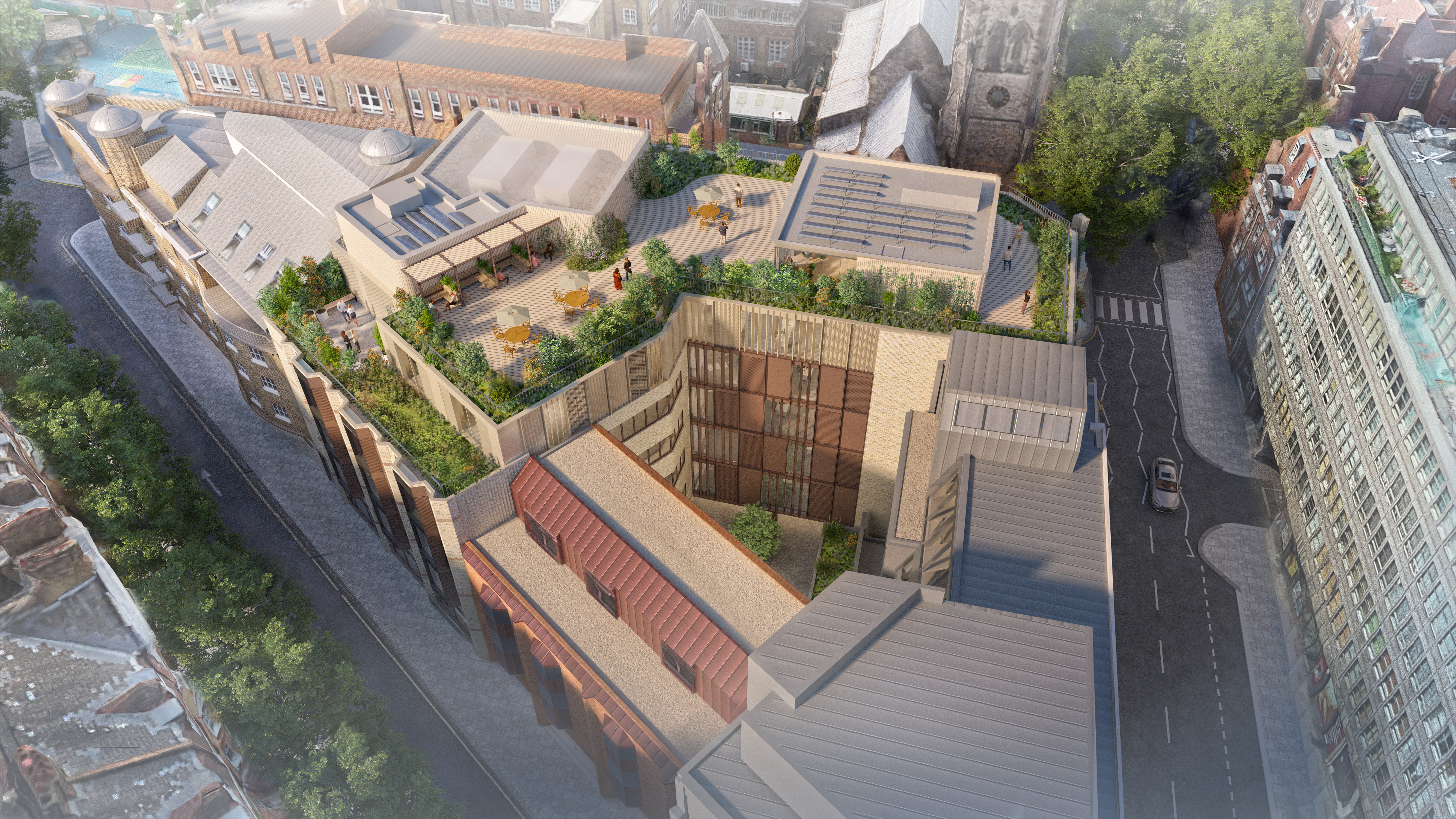 Our sustainability focus includes urban greening; fostering biodiversity and creating a welcoming habitat for wildlife. Retaining the existing structure not only cuts over 500 tonnes of CO2 during construction but also keeps our upfront carbon footprint well below the GLA benchmark for offices.