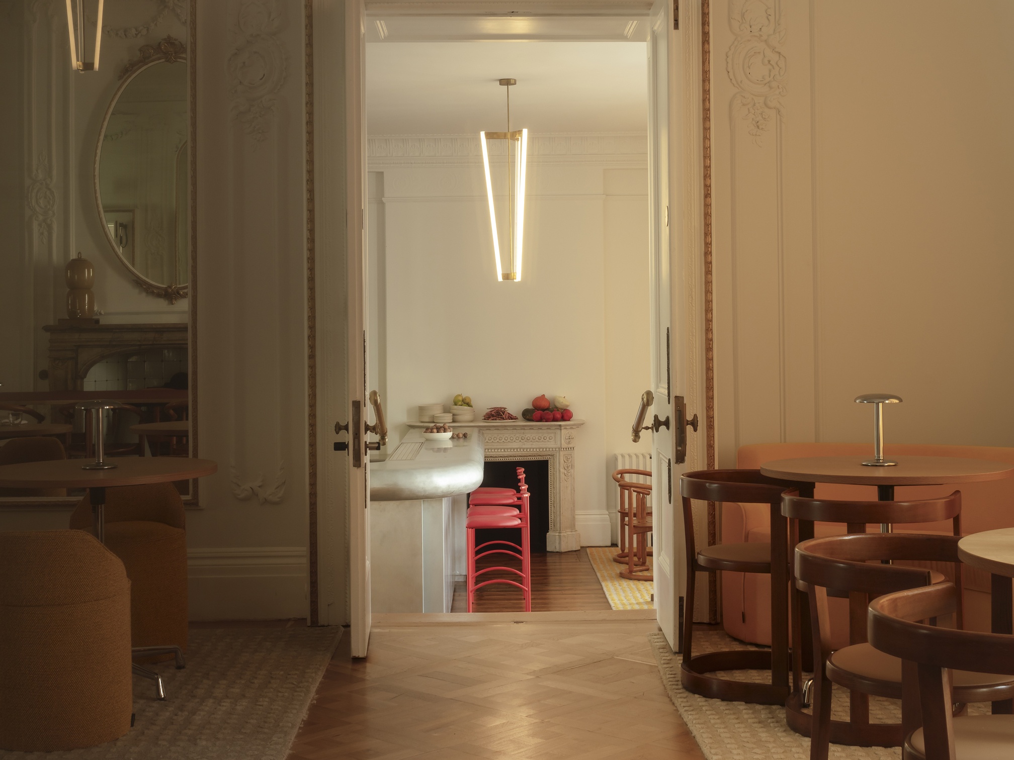 We avoid trends as much as possible, although today we are saturated with imagery through social media, Pinterest and design blogs. We feel a strong, characterful interior should reflect the existing architecture - whether this is an old building or a new, contemporary development, we seek to explore the architectural values; materiality, details, enhance natural daylight etc, these elements should be the forefront of the design approach, we try not to push current trends, but they often appear later in the process through patterned or textured upholstery, vintage or unique furniture pieces and ultimately the playful and interesting styling items.